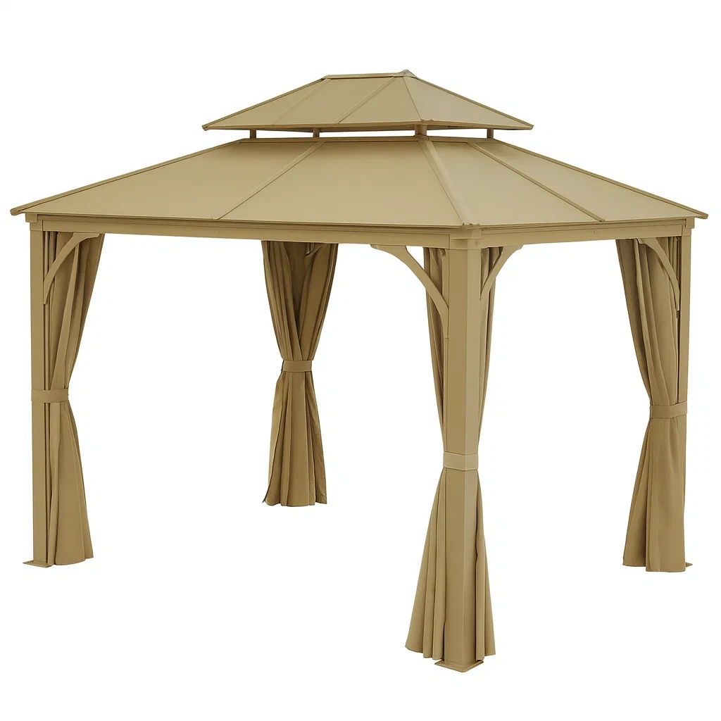 Gazebo in Alluminio con Tetto e Tende Beige