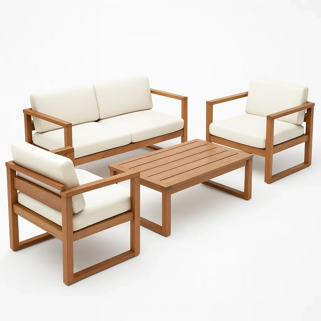 Materiale: struttura in legno teak, cuscini in poliestere.